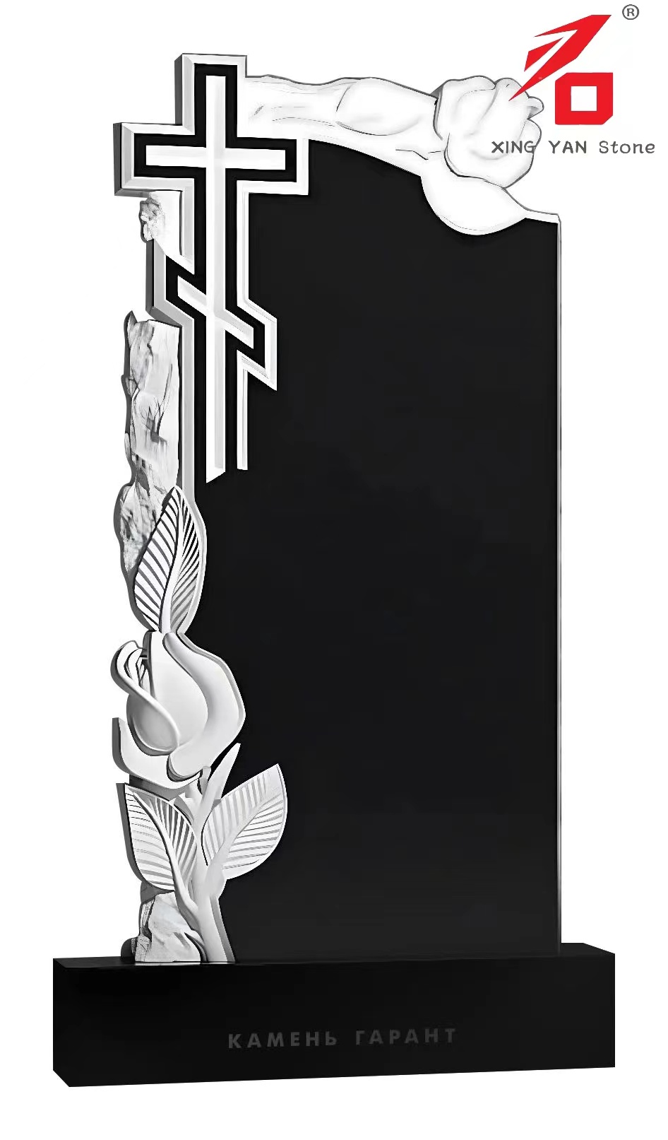 भावनात्मक अभिव्यक्ति। कालो ग्रेनाइटले अनन्त र गहिराईको प्रतीक गर्दछ, क्रस