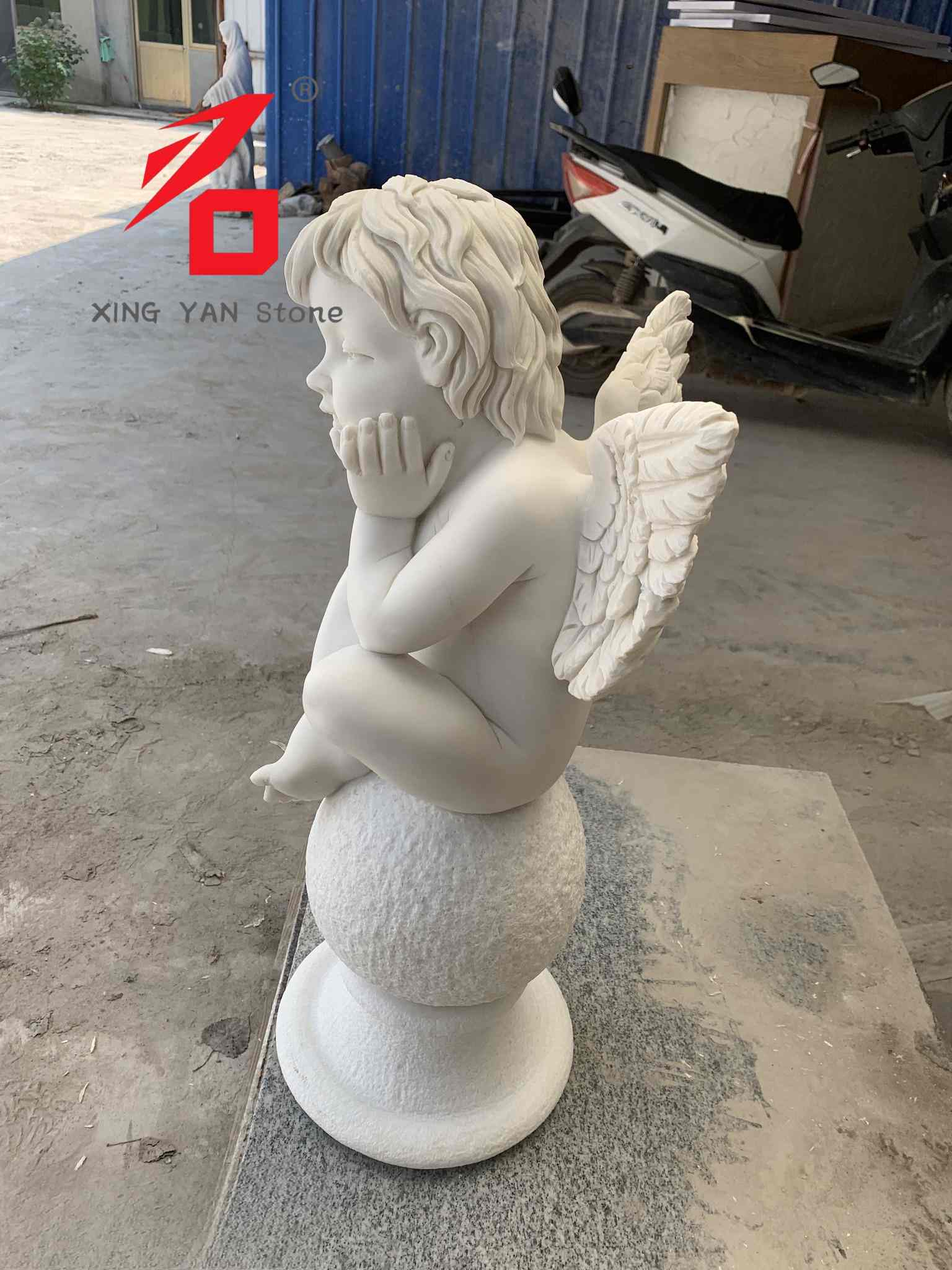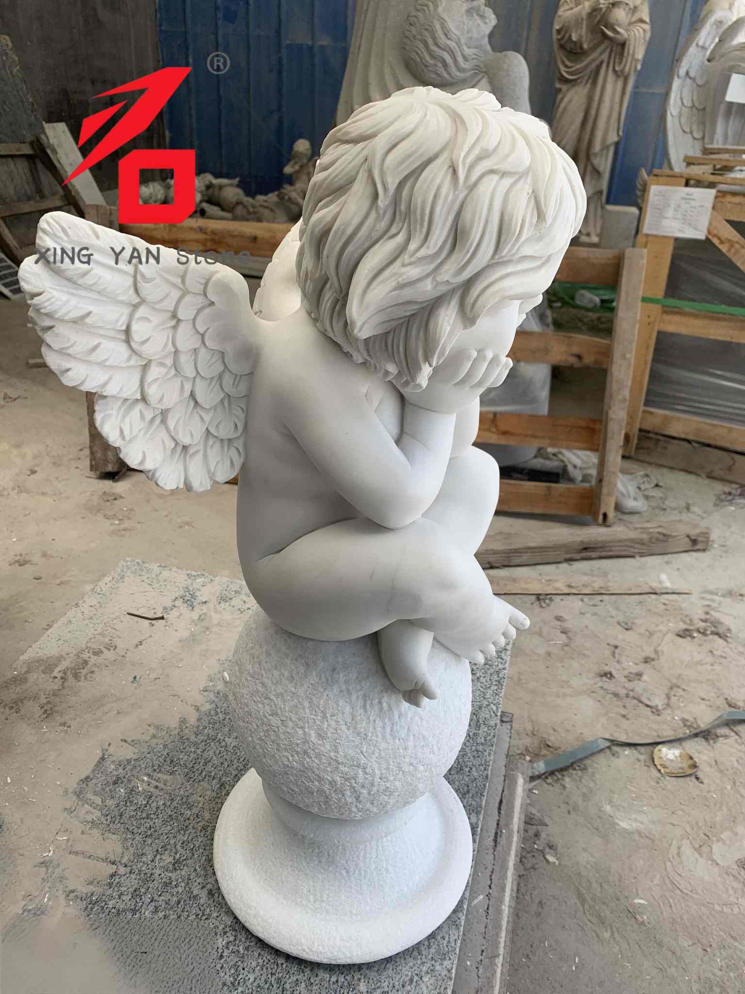 डिजाइन शैली: एक युरोपेली शास्त्रीय शैली अपनाउदै, करूबलाई चिन्तनशील मुद्रामा चित्रण गरिएको छ, हातले आफ्नो चिनलाई समर्थन गर्दै, एक निर्मल अभिव्यक्तिको साथ। उनका पखेटाहरू स्पष्ट रूपमा परिभाषित छन्, र प्वाँखको बनावट फरक छ, समग्र रोमान्टिक भावना सिर्जना गर्दछ जुन युरोपेली बगैंचा, धार्मिक स्थलहरू, वा स्मारक सेटिङहरूको सजावटी आवश्यकताहरू अनुरूप हुन्छ।